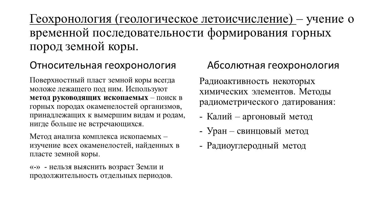 «-» - нельзя выяснить возраст Земли и продолжительность отдельных периодов.