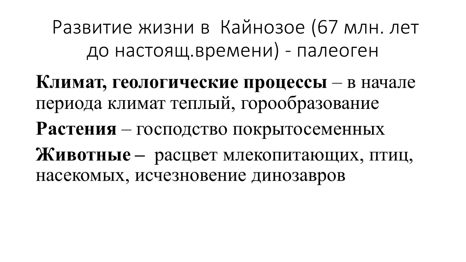 Развитие жизни в Кайнозое (67 млн. лет до настоящ.времени) - палеоген