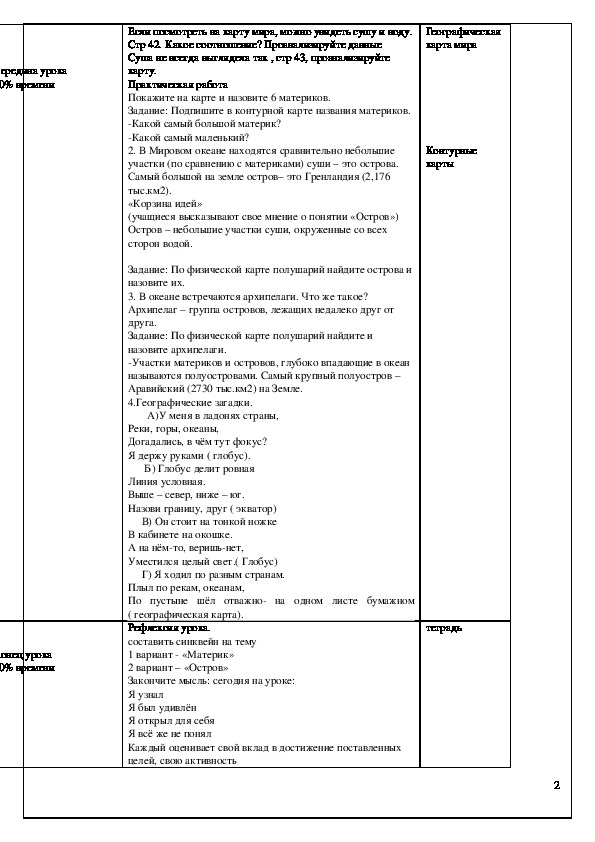 Учащиеся могут: называть материки и крупные острова, показывать их на карте
