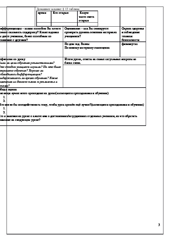 Что я выяснил на уроке о классе или о достижениях/затруднениях отдельных учеников, на что обратить