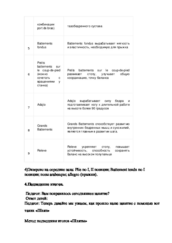 4)Экзерсис на середине зала: Plie по I, II позиции; Battement tendu по I