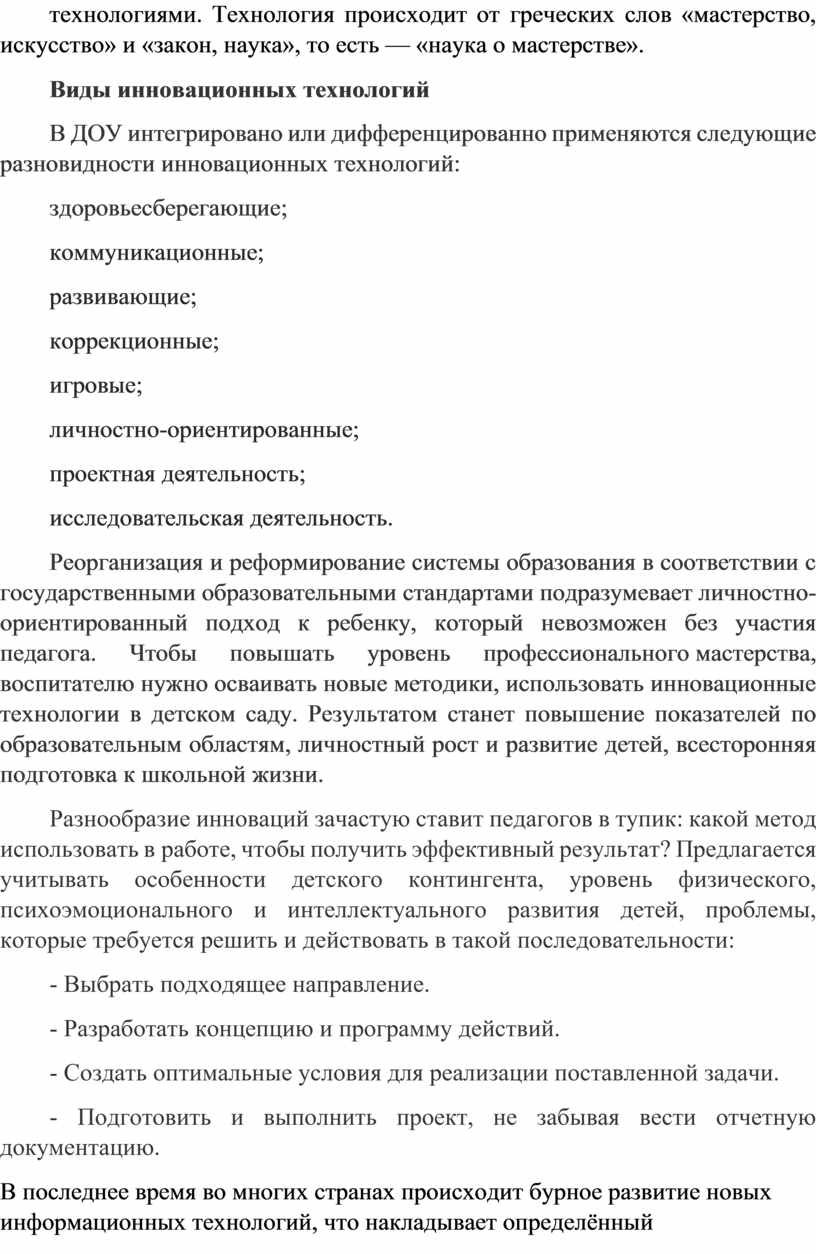Виды инновационных технологий