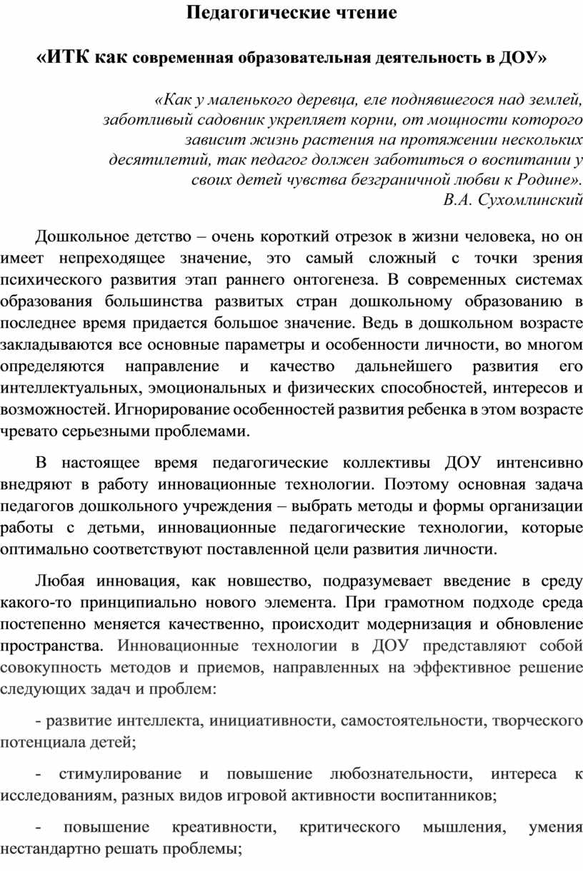 Педагогические чтение