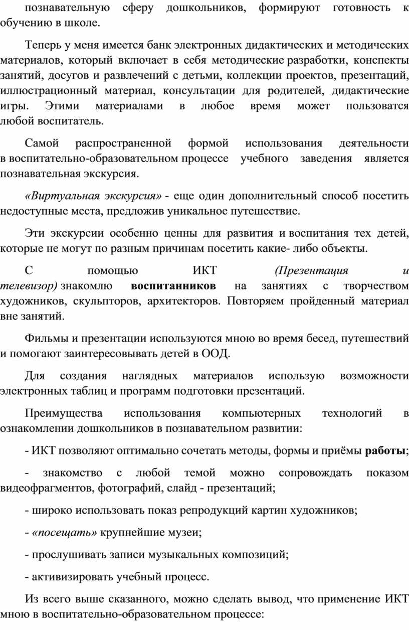 Из всего выше сказанного, можно сделать вывод, что применение ИКТ мною в воспитательно-образовательном процессе: