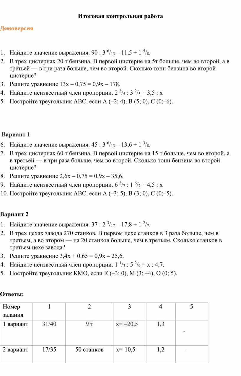 Итоговая контрольная работа
