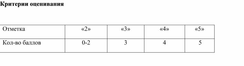 Критерии оценивания