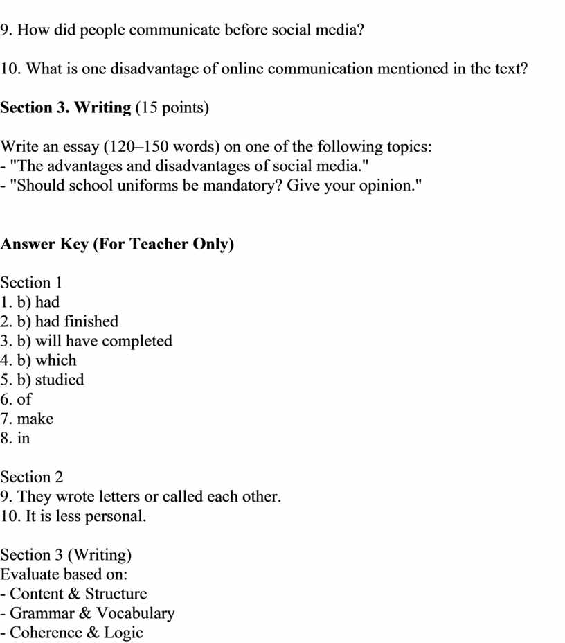 Answer Key (For Teacher Only)