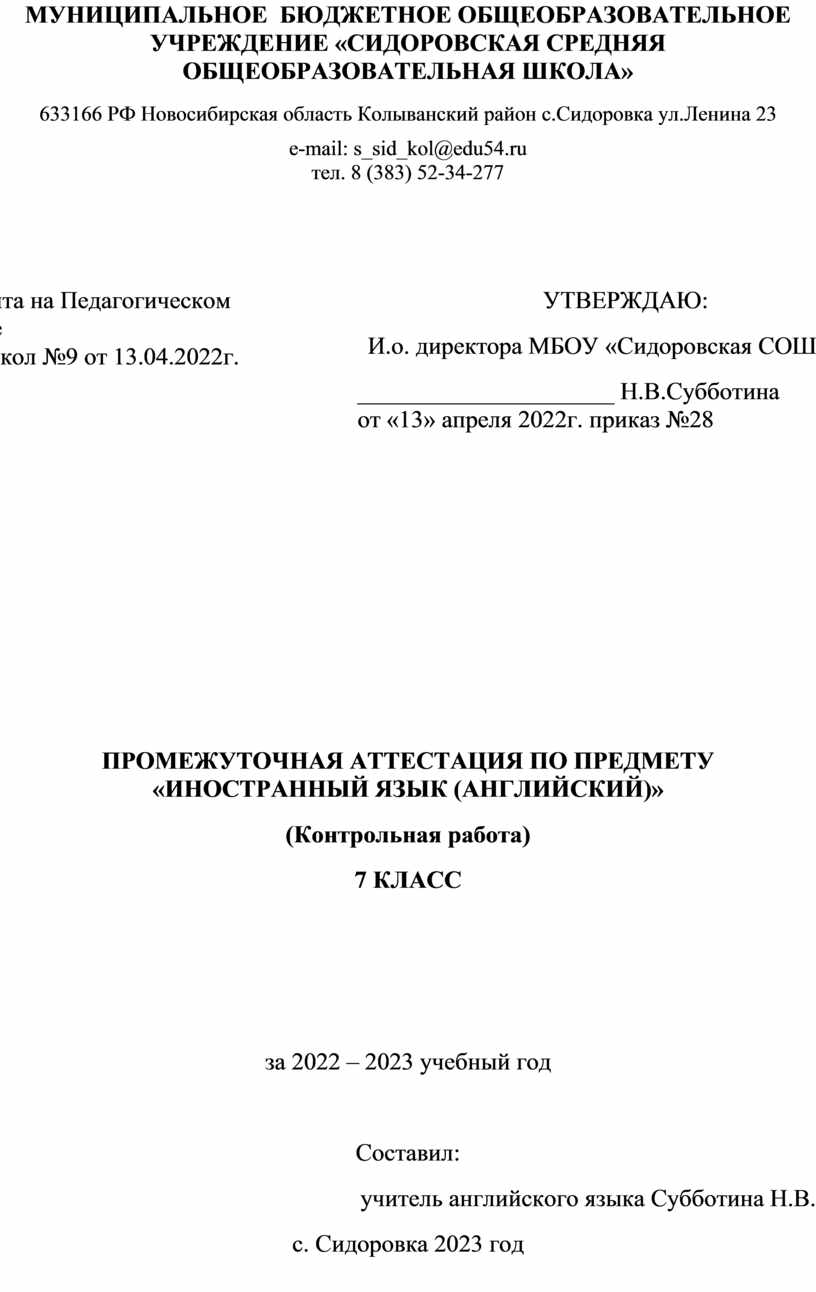ПРОМЕЖУТОЧНАЯ АТТЕСТАЦИЯ ПО ПРЕДМЕТУ «ИНОСТРАННЫЙ ЯЗЫК (АНГЛИЙСКИЙ)»