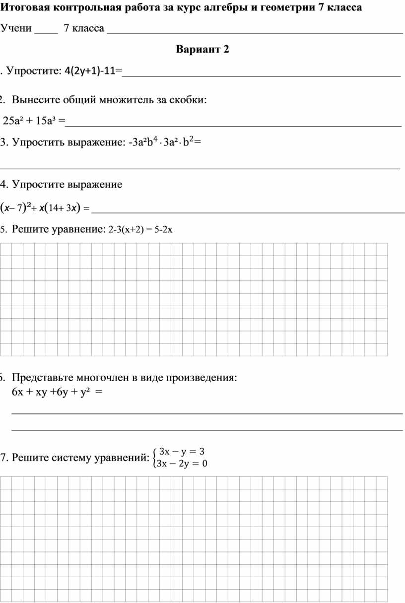 Итоговая контрольная работа за курс алгебры и геометрии 7 класса