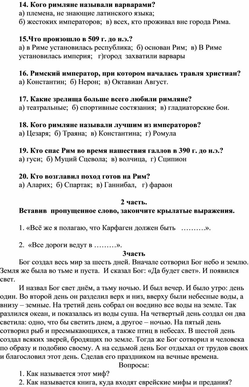 б) жестоких императоров; в) всех, кто проживал вне города Рима.