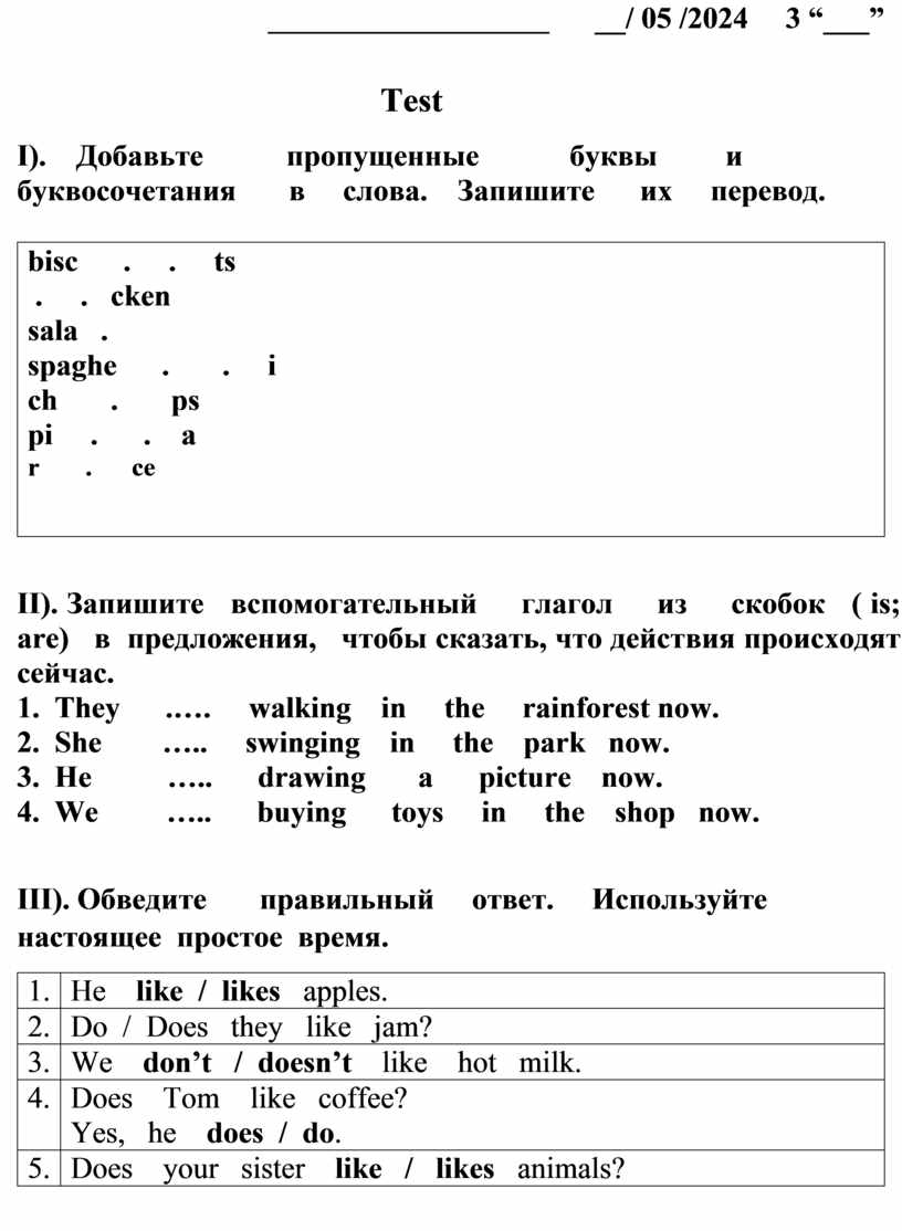 III). Обведите правильный ответ. Используйте настоящее простое время.