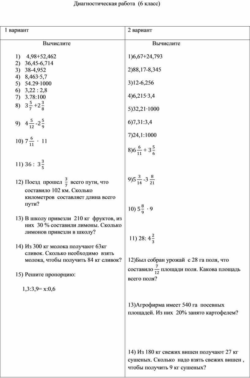 Диагностическая работа (6 класс)