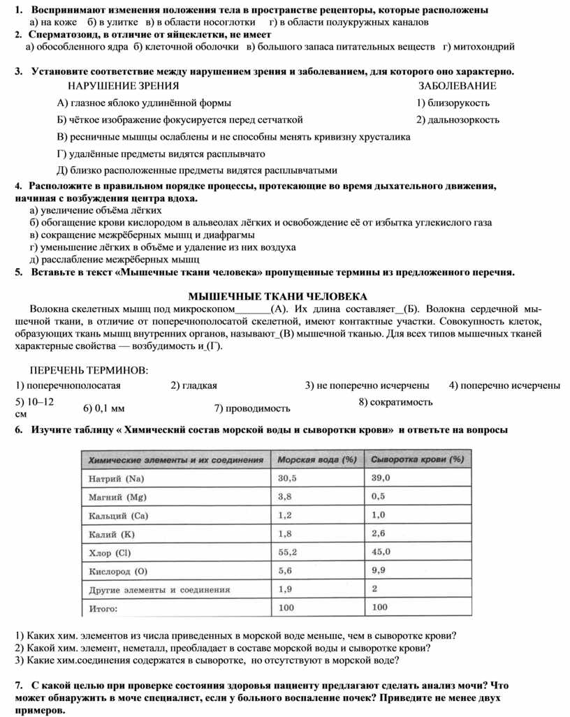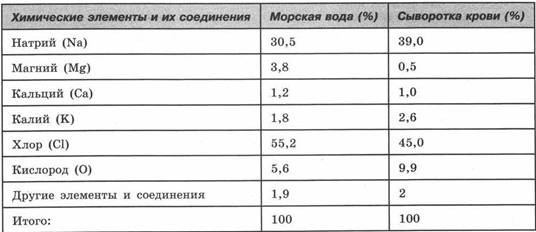 1) Каких хим. элементов из числа приведенных в морской воде меньше, чем в сыворотке крови?