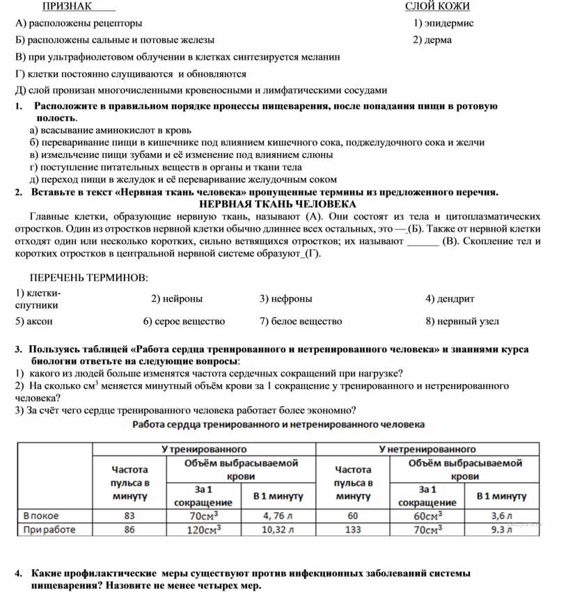 не поперечно исчерчены 4) поперечно исчерчены 5) 10–12 см 6) 0,1 мм 7) проводимость 8) сократимость