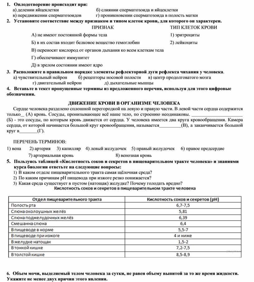 5. Сокращение мышечной стенки левого желудочка сердца обеспечивает передвижение крови а) по малому кругу кровообращения б) из правого предсердия в левое предсердие в) из левого предсердия в левый желудочек г) по большому кругу кровообращения