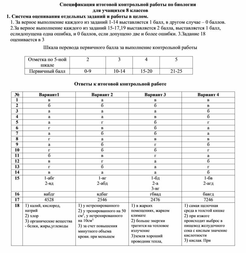 1. За верное выполнение каждого из заданий 1-14 выставляется 1 балл, в другом случае – 0 баллов. 2.За верное выполнение каждого из заданий 15-17,19 выставляется 2 балла, выставляется 1 балл, если допущена одна ошибка, и 0 баллов, если допущено две и более ошибки. 3.Задание 18 оценивается в 3