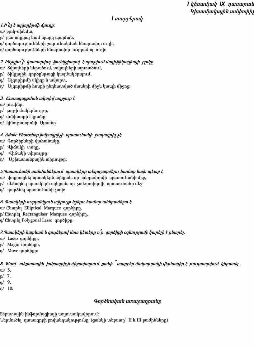 I կիսամյակ IX դասարան