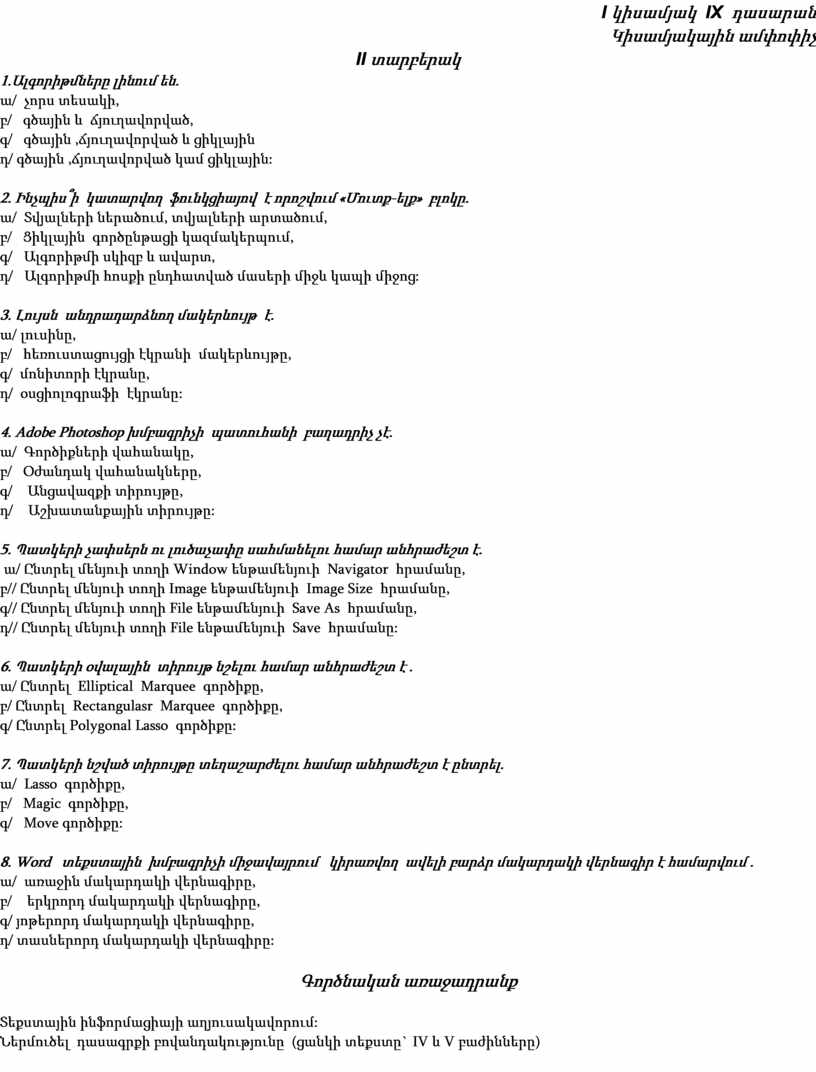 1.Ալգորիթմները լինում են.