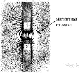 расположению магнитной стрелки, соответствуют области 1 и 2?