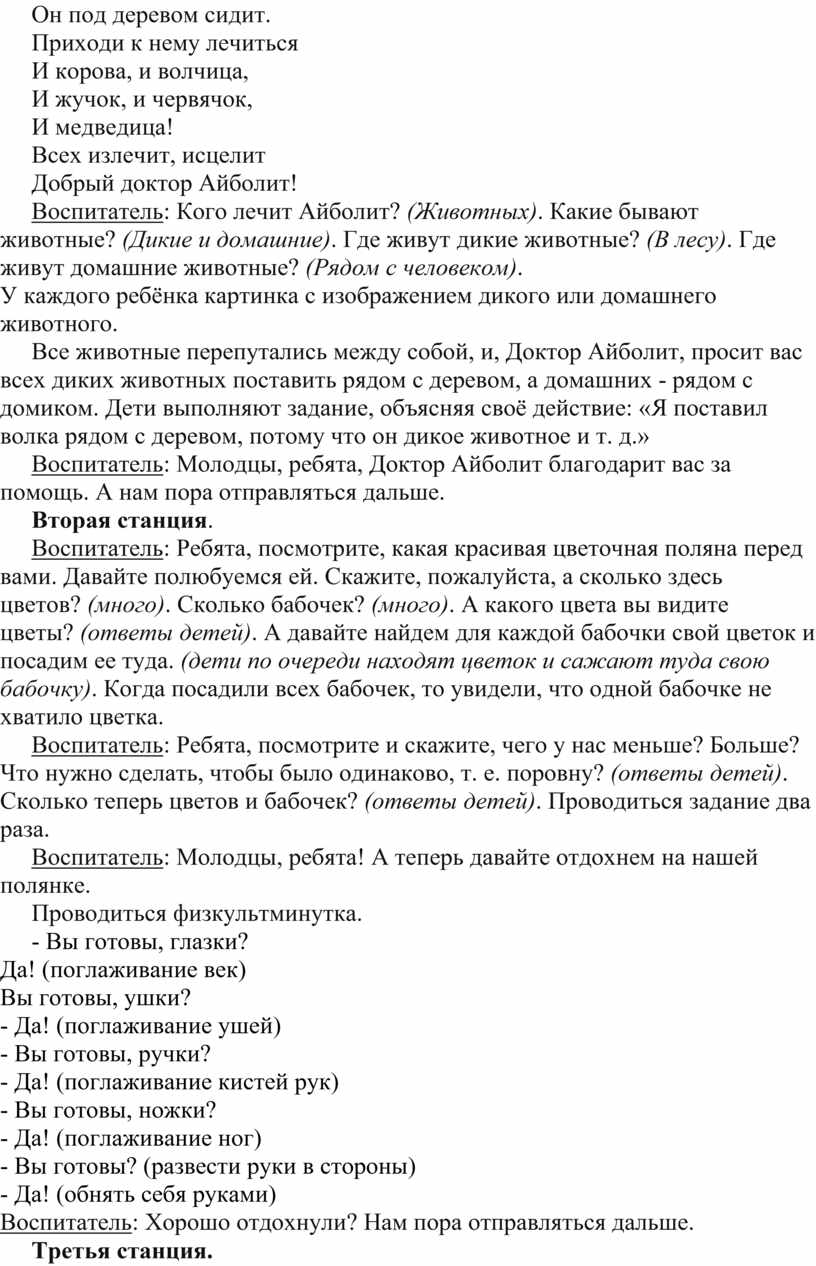 Воспитатель: Молодцы, ребята, Доктор Айболит благодарит вас за помощь. А нам пора отправляться дальше.