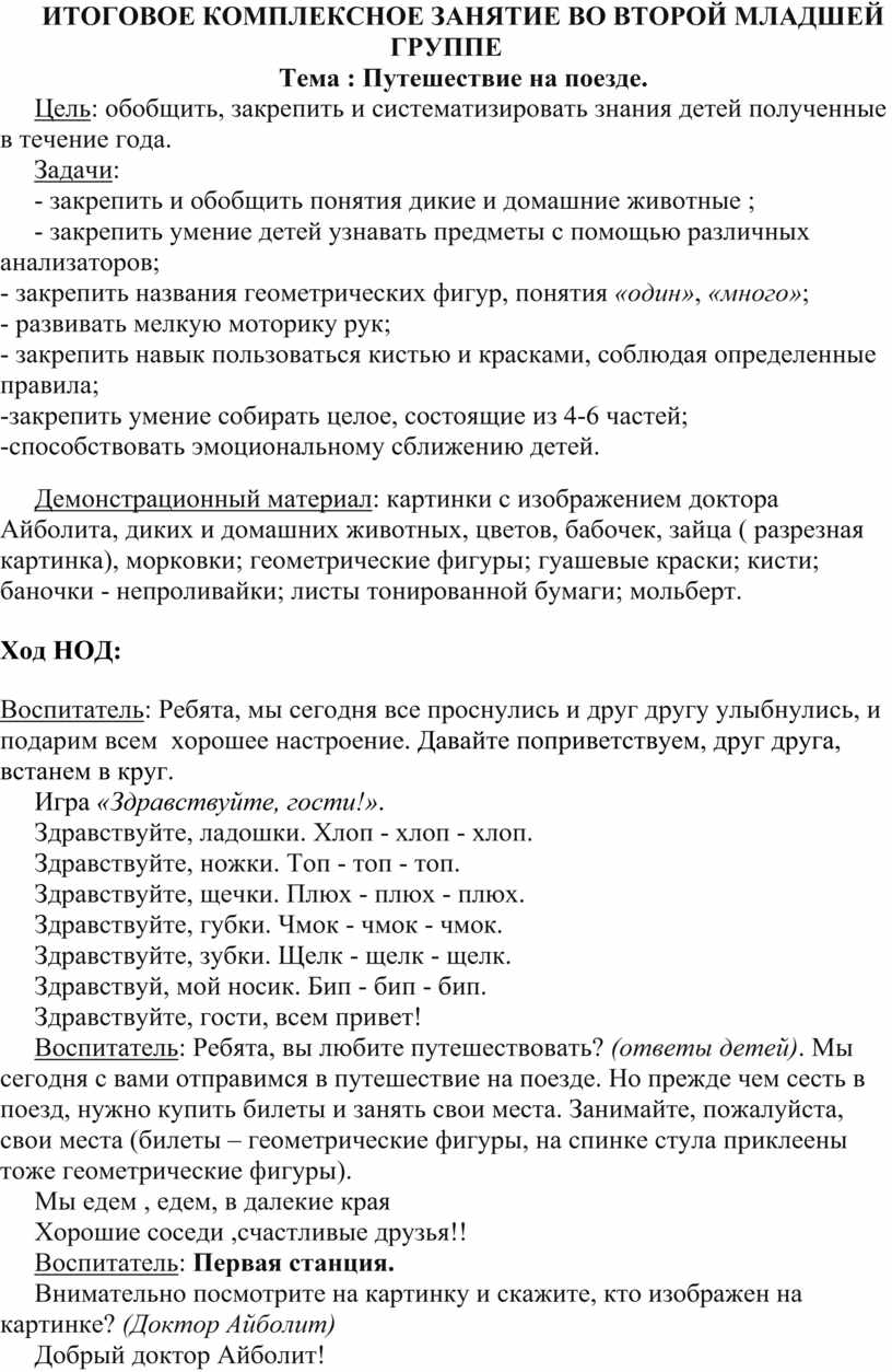 ИТОГОВОЕ КОМПЛЕКСНОЕ ЗАНЯТИЕ ВО ВТОРОЙ МЛАДШЕЙ ГРУППЕ