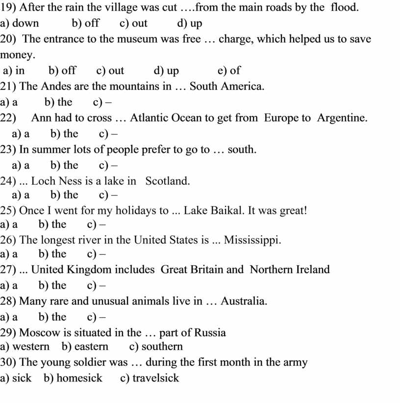 22) Ann had to cross … Atlantic Ocean to get from Europe to Argentine.