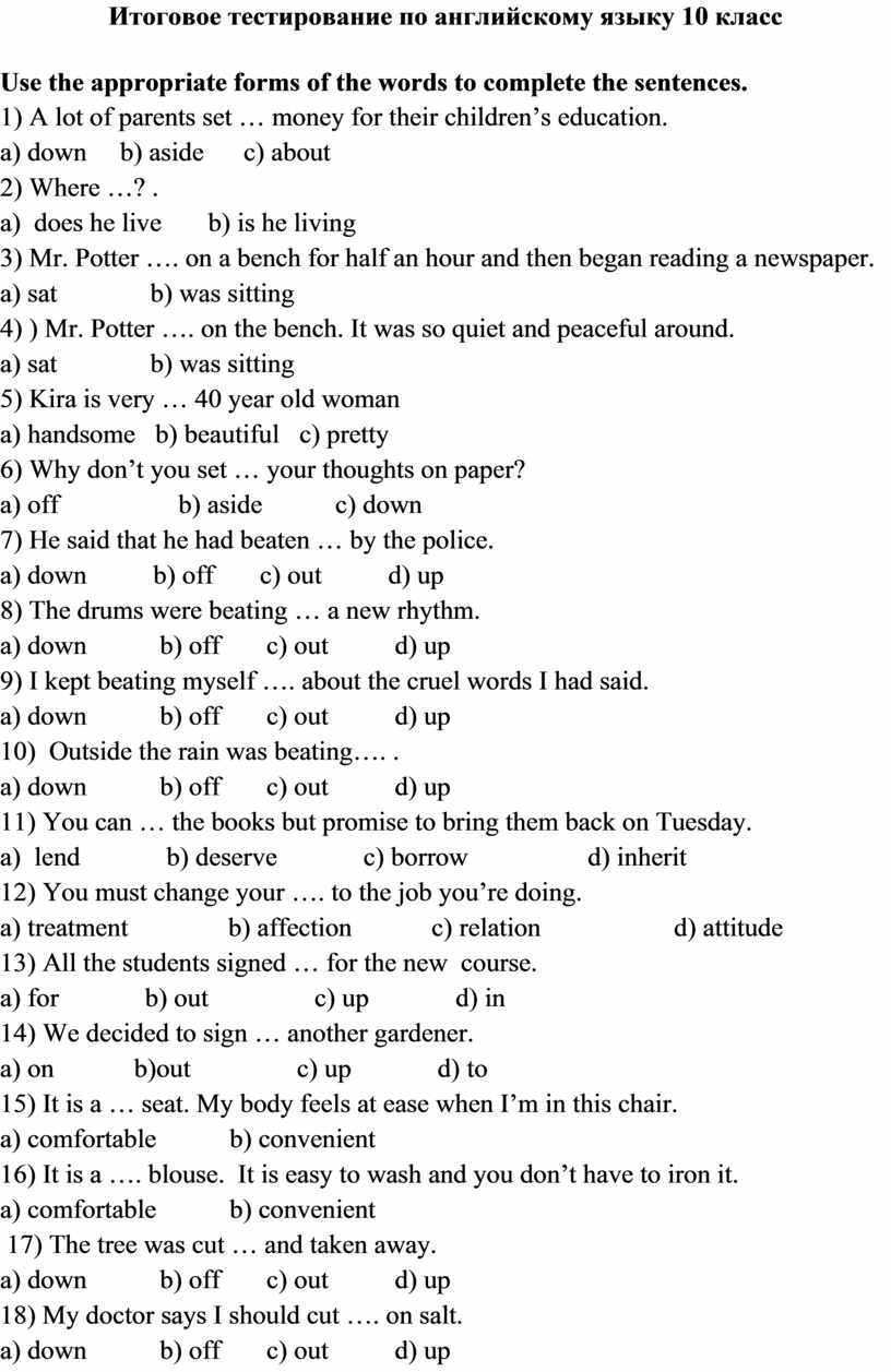 Итоговое тестирование по английскому языку 10 класс
