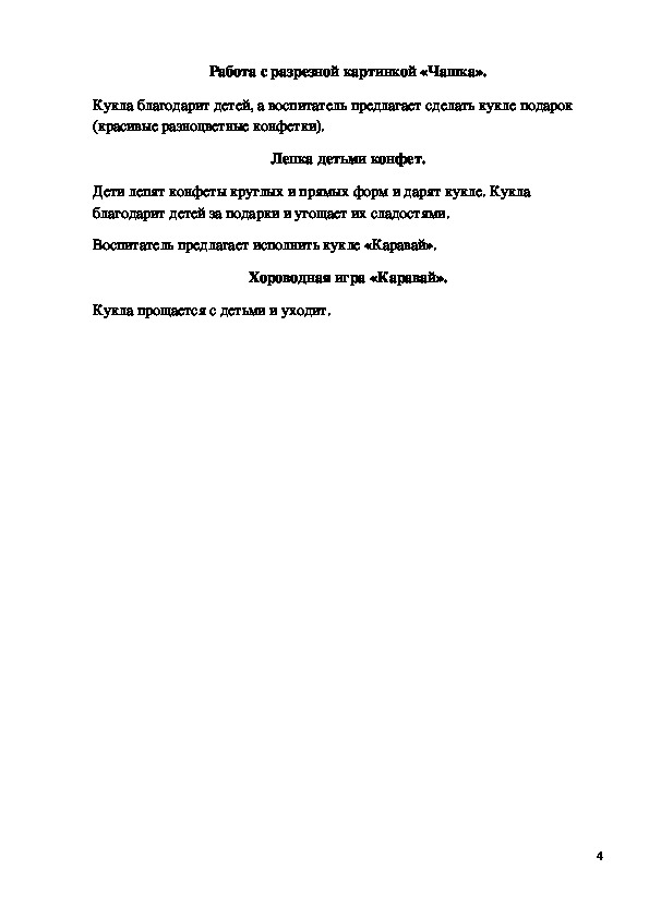 гимнастика «Помощник», работа с разрезной картинкой «Чашка», хороводная