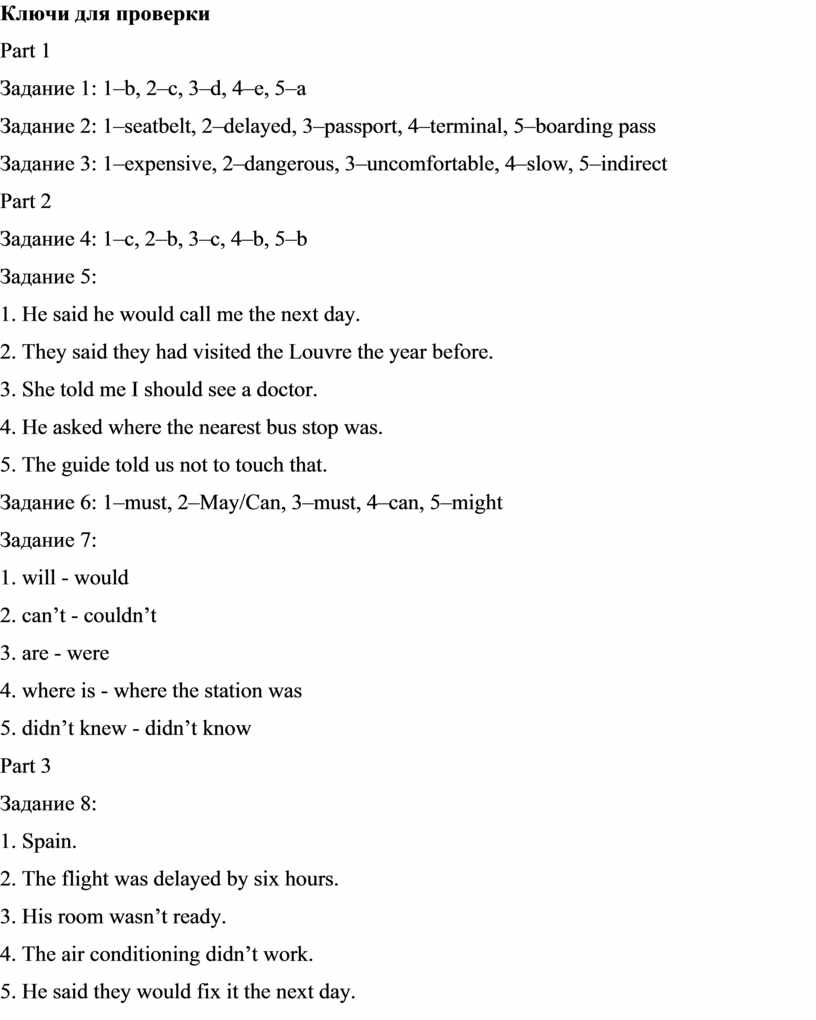 Задание 2: 1–seatbelt, 2–delayed, 3–passport, 4–terminal, 5–boarding pass