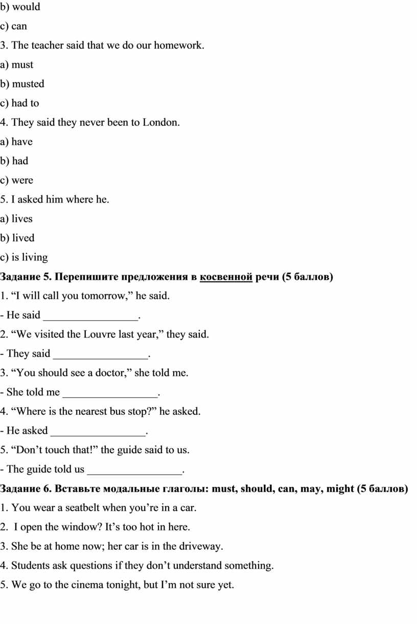Задание 6. Вставьте модальные глаголы: must, should, can, may, might (5 баллов)
