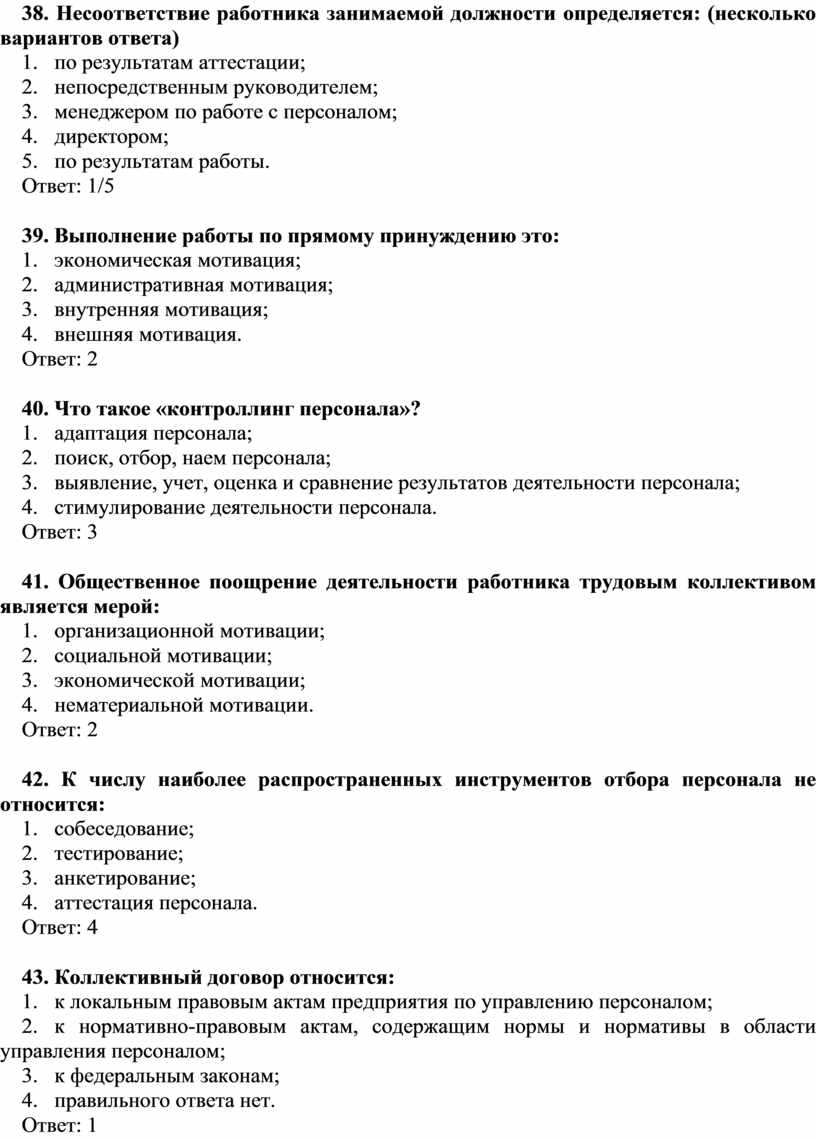 38. Несоответствие работника занимаемой должности определяется: (несколько вариантов ответа)