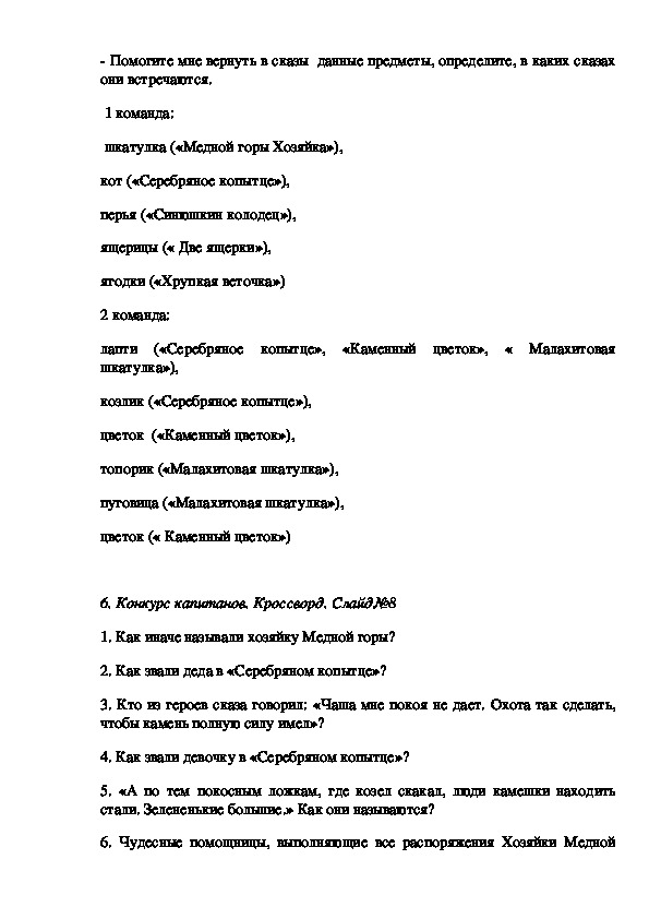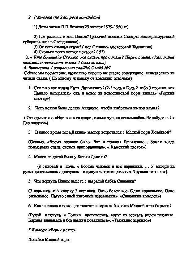 мы должны убедиться, что хорошо знаем сказы этого писателя. Прошло уже