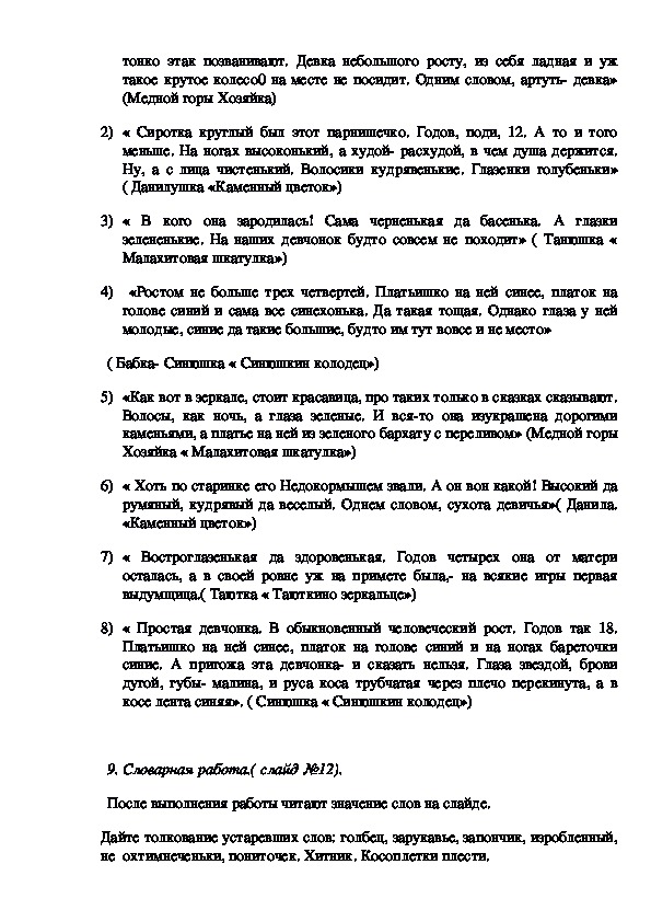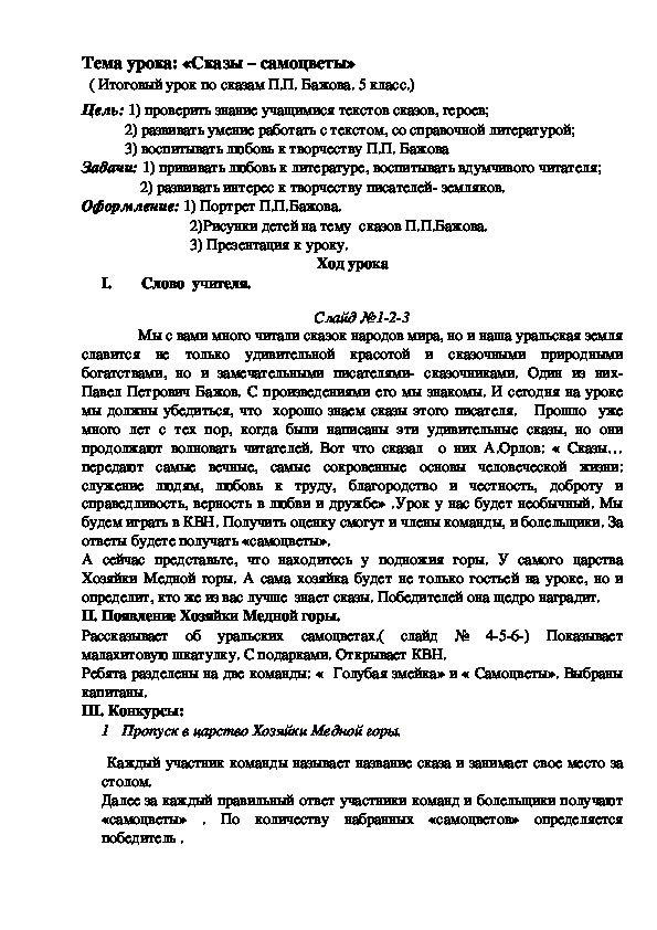 ( Итоговый урок по сказам П.П. Бажова. 5 класс.)