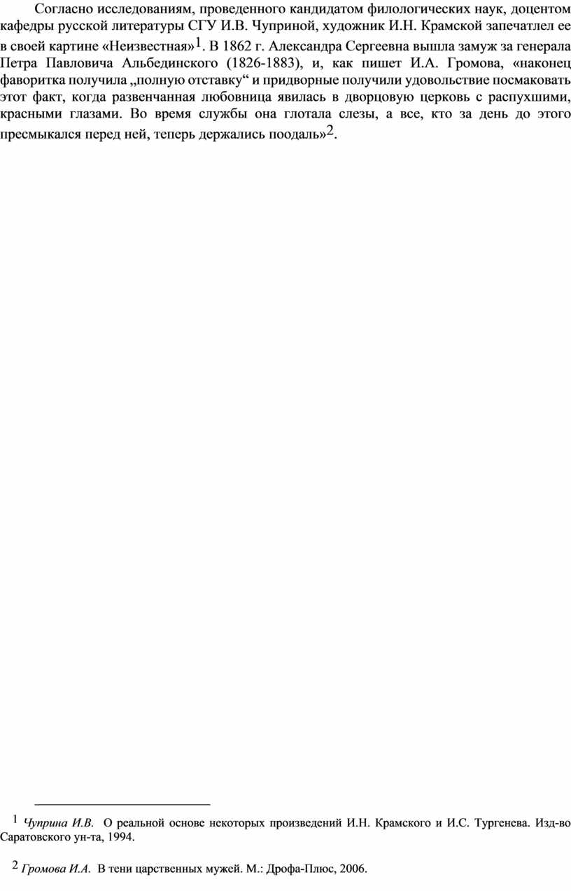 [1] Чуприна И.В. О реальной основе некоторых произведений И.Н. Крамского и И.С. Тургенева. Изд-во Саратовского ун-та, 1994.