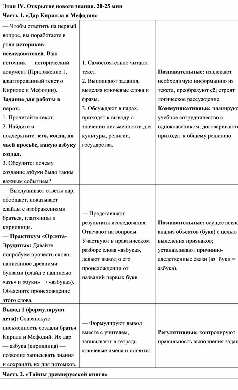 Этап IV. Открытие нового знания. 20-25 мин Часть 1. «Дар Кирилла и Мефодия» |
