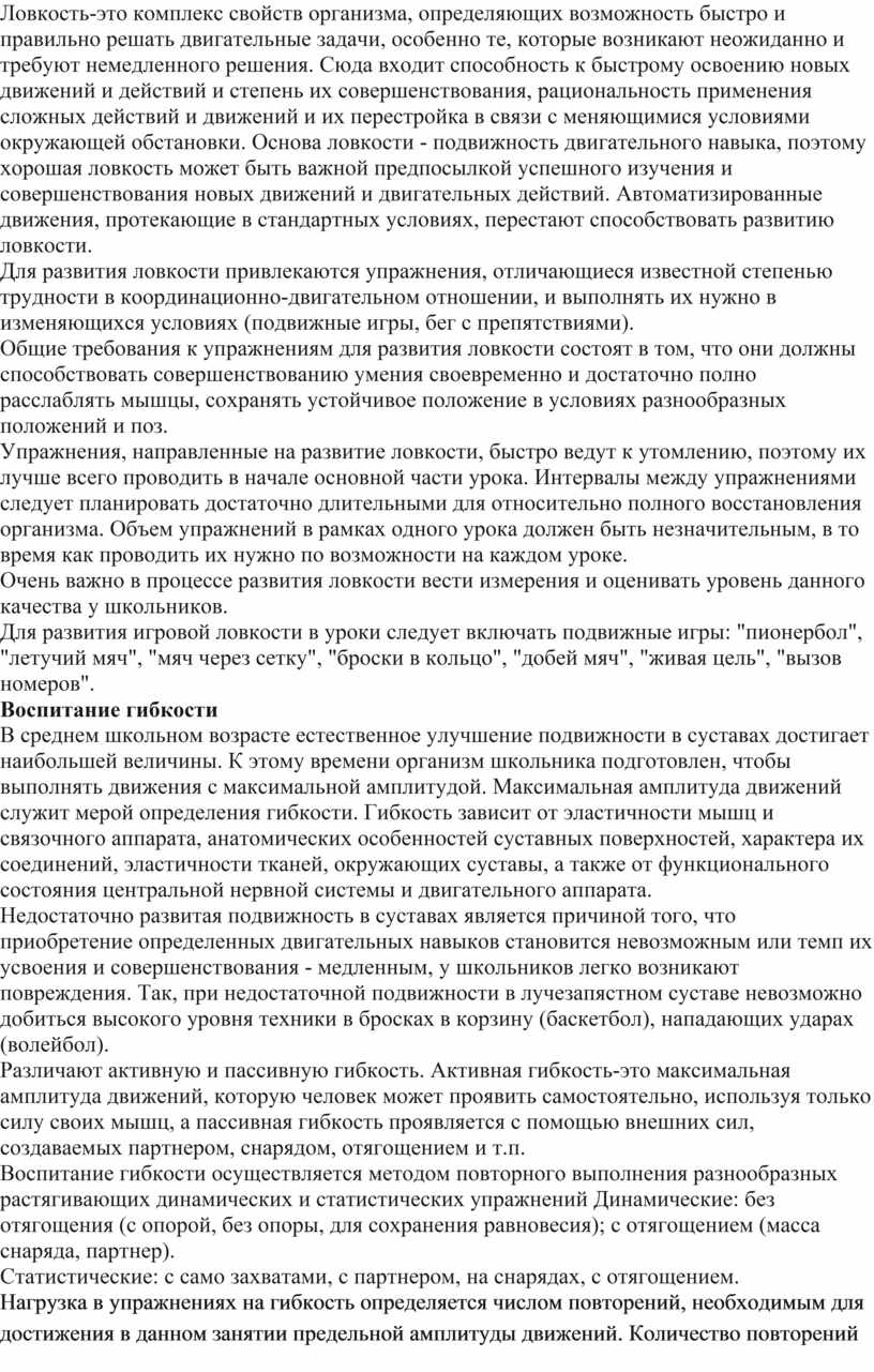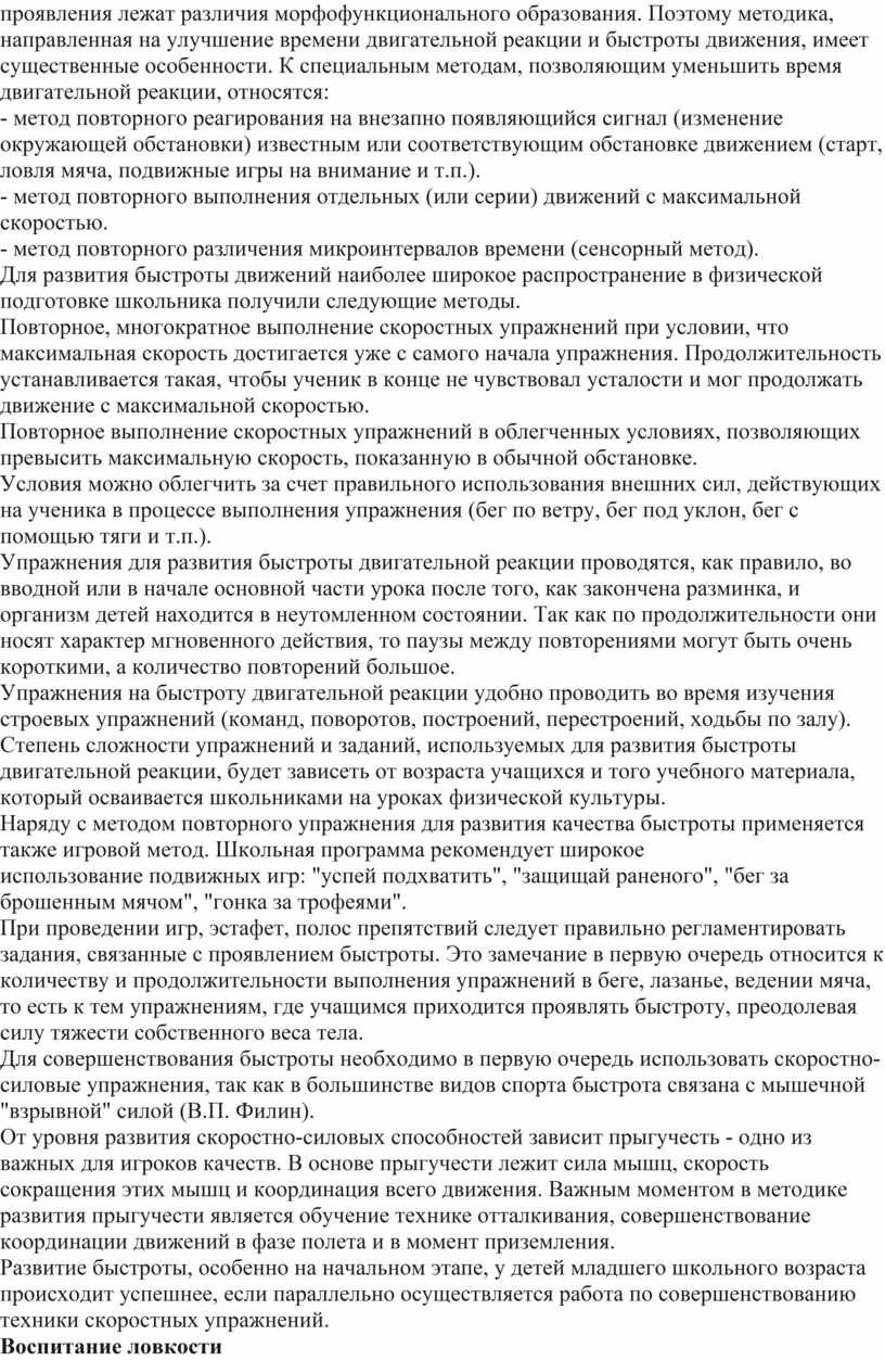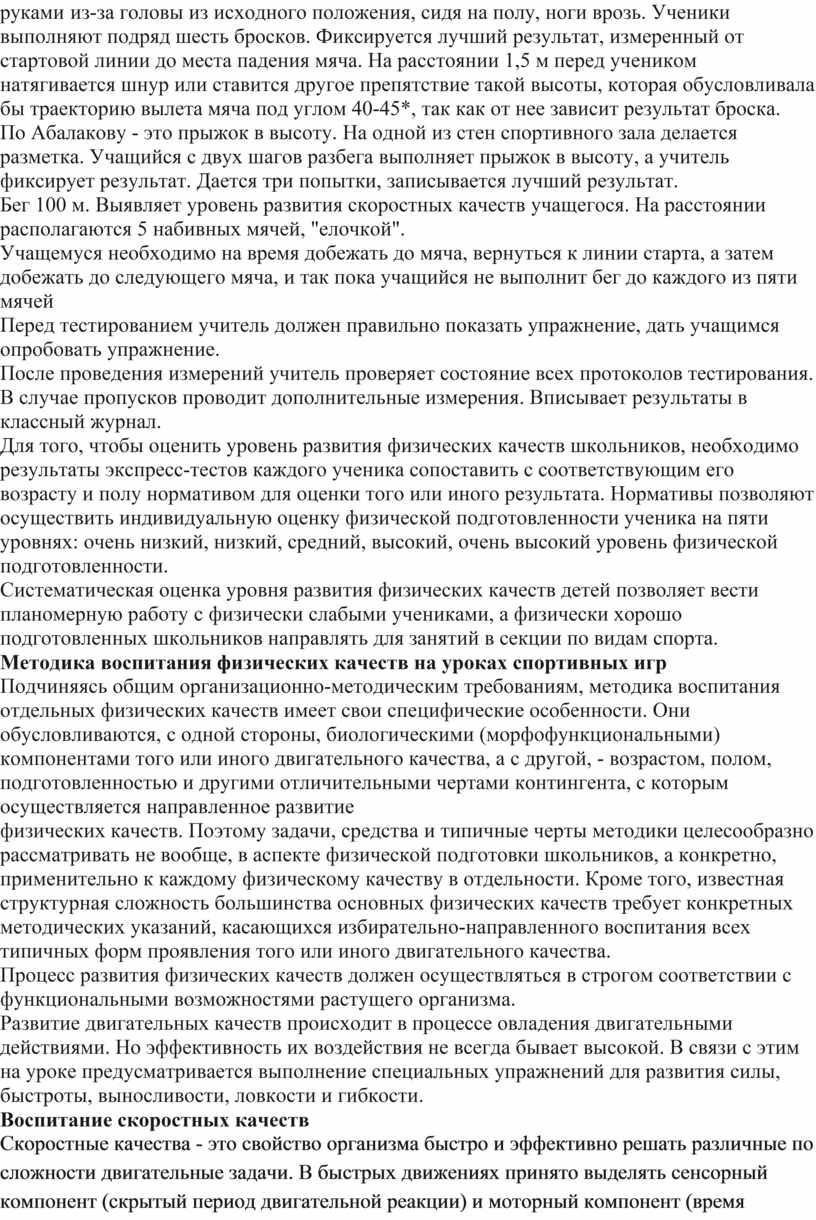 Методика воспитания физических качеств на уроках спортивных игр