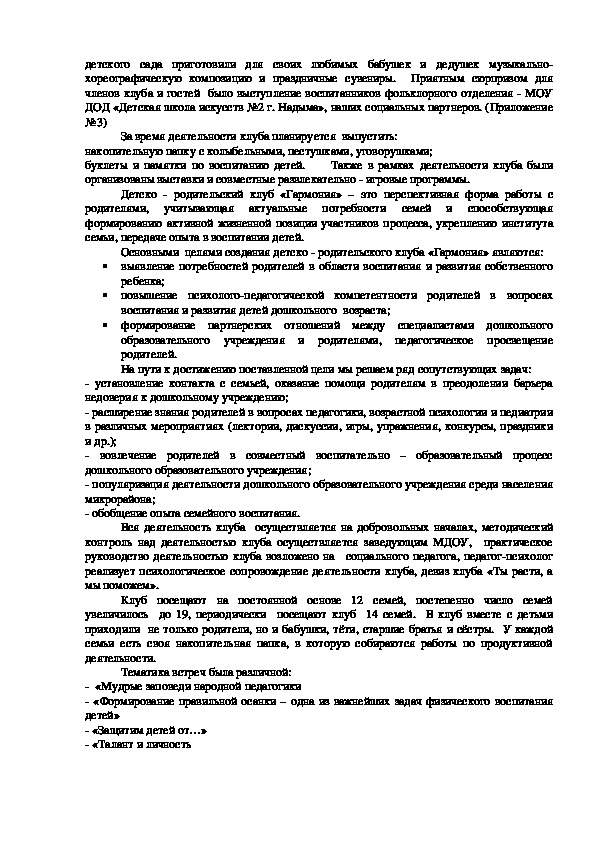 Детско родительский клуб «Гармония» – это перспективная форма работы с