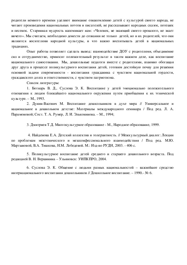 интернационального воспитания дошкольников // Дошкольное воспитание. – 1990. № 6.