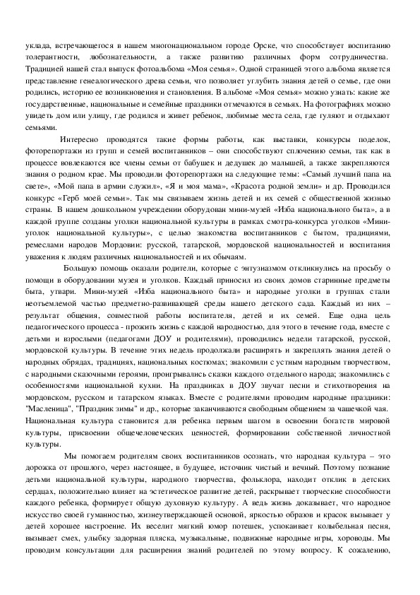 национального самосознания. Мы, дошкольные педагоги вместе с родителями, взаимно обогащая