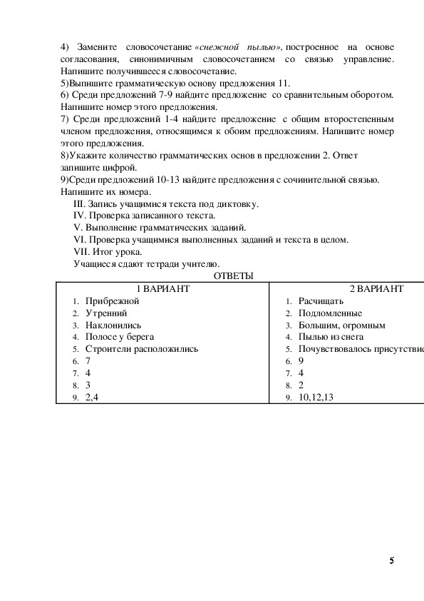 7) Среди предложений 14 найдите предложение с общим второстепенным