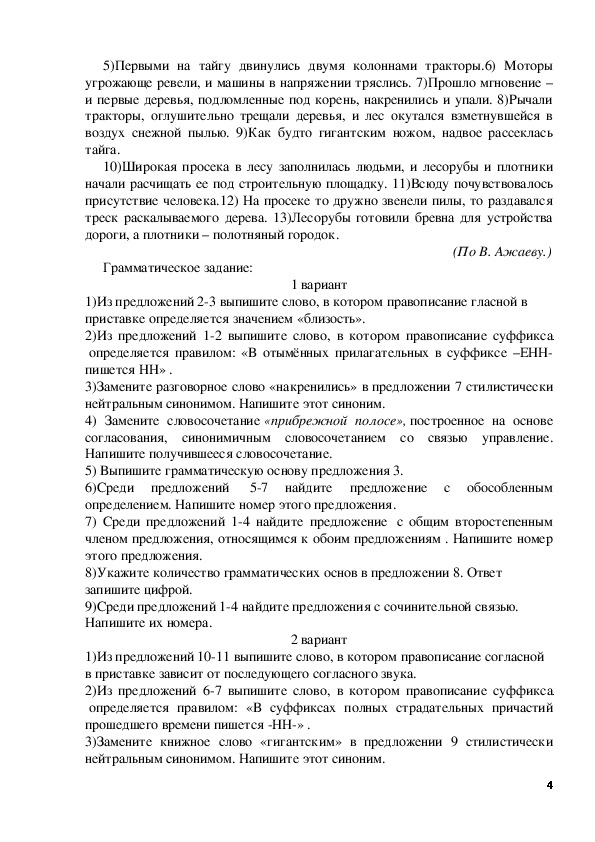 КОНТРОЛЬНЫЙ ДИКТАНТ С ЗАДАНИЕМ В РАМКАХ ГИА В 9