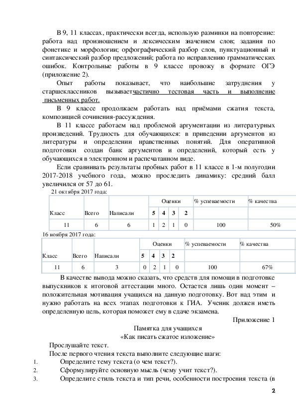 В 9 классе продолжаем работать над приёмами сжатия текста,