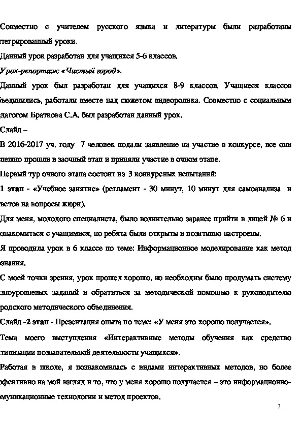 В 2016 году мне выпала такая честь участвовать в конкурсе «Учитель года» в