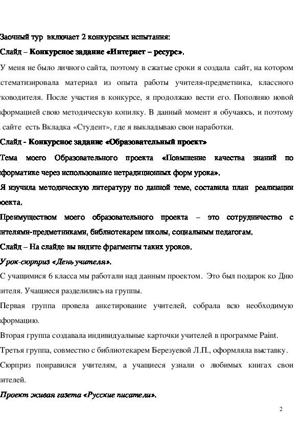 руководителя. После участия в конкурсе, я продолжаю вести его. Пополняю новой