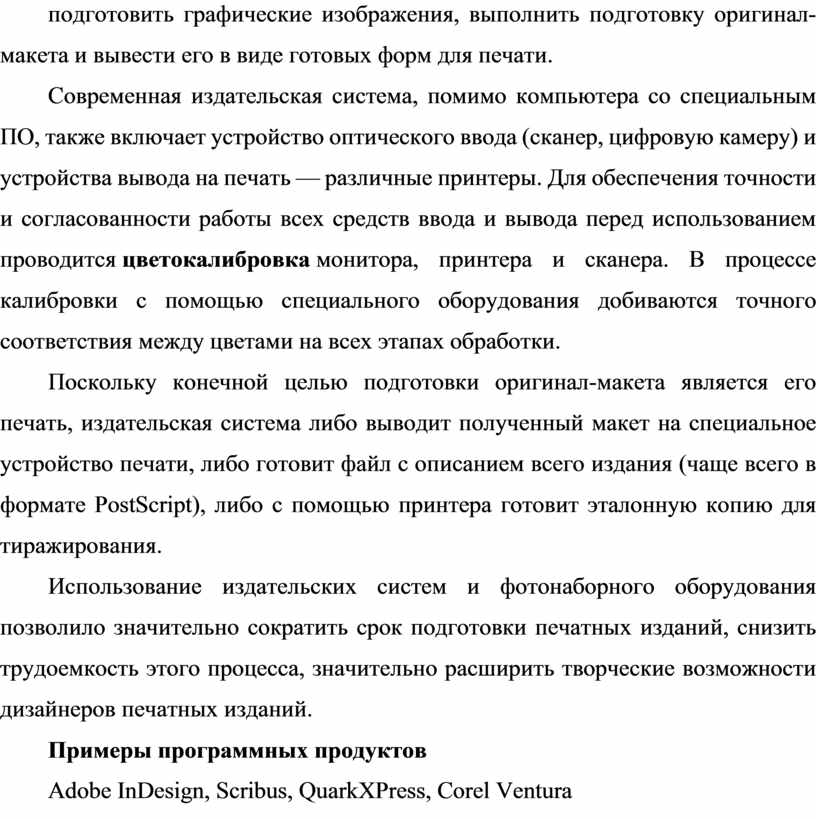 Использование издательских систем и фотонаборного оборудования позволило значительно сократить срок подготовки печатных изданий, снизить трудоемкость этого процесса, значительно расширить творческие возможности дизайнеров печатных изданий.