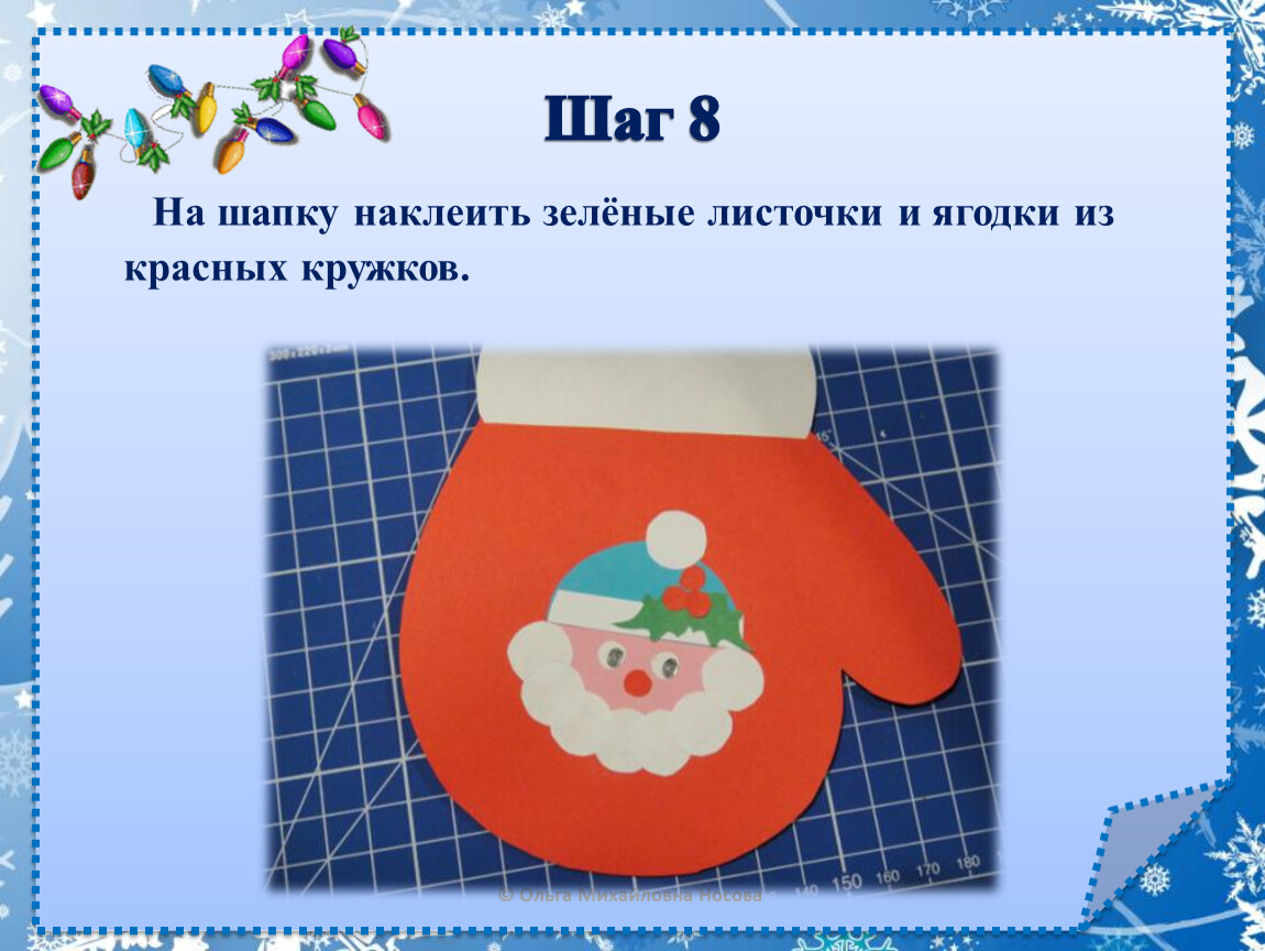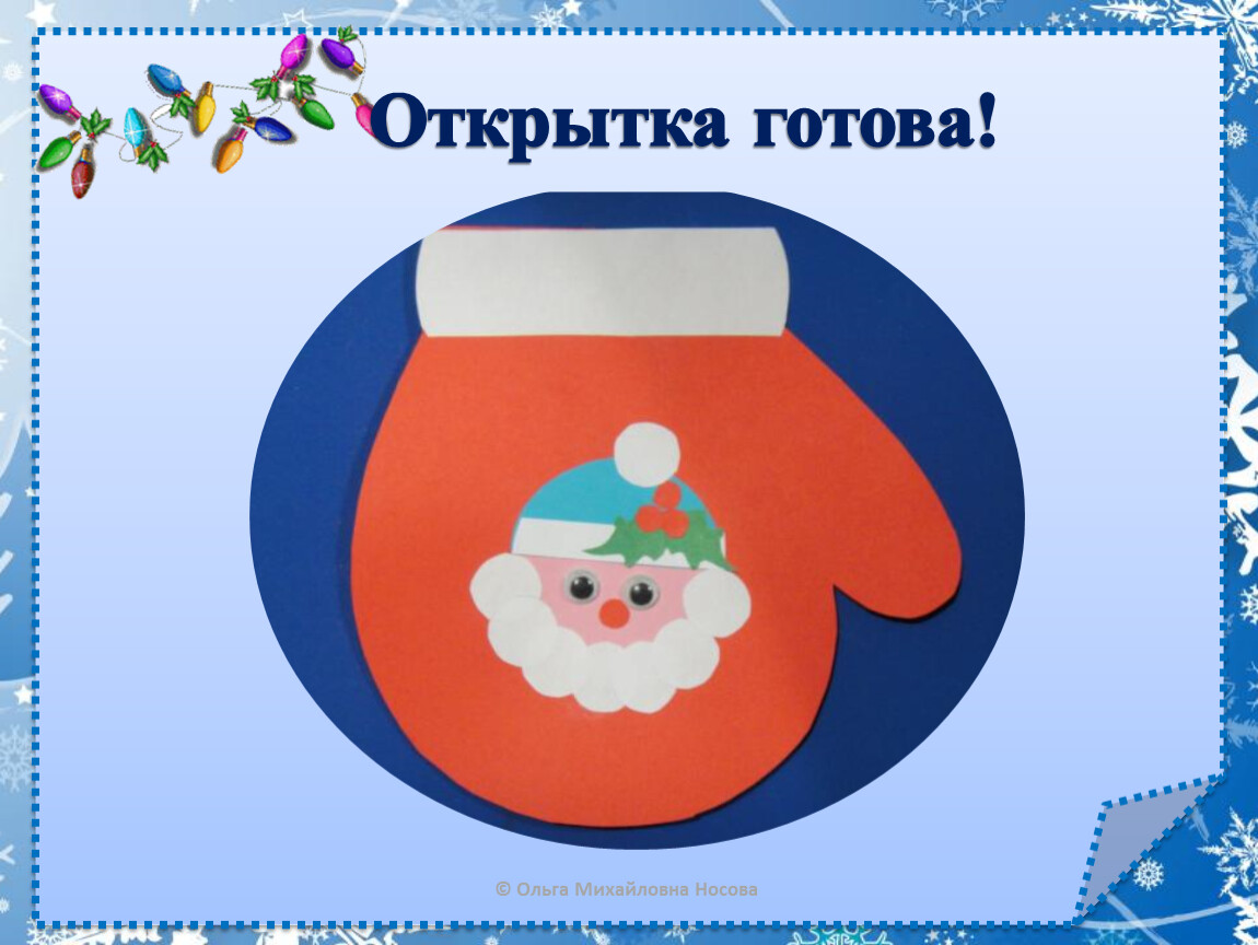 Оформляем лицо – наклеить глазки из маленьких белых кружков и посередине нарисовать черные кружочки. Можно приклеить готовые пластиковые глазки. Красный кружок – нос.