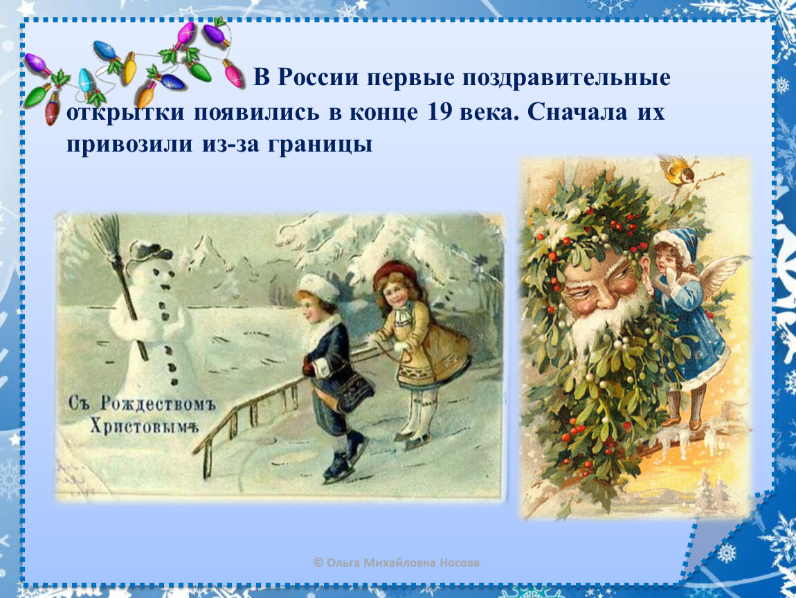 В России первые поздравительные открытки появились в конце 19 века. Сначала их привозили из-за границы