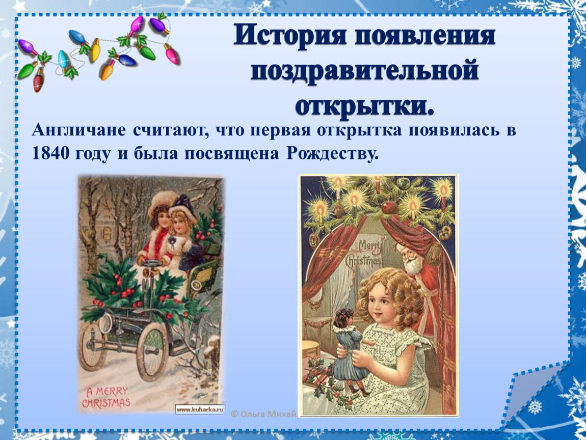 Англичане считают, что первая открытка появилась в 1840 году и была посвящена Рождеству.