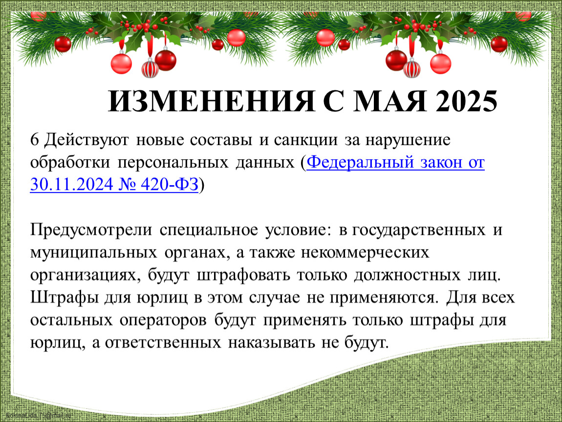 6 Действуют новые составы и санкции за нарушение обработки персональных данных (Федеральный закон от 30.11.2024 № 420-ФЗ)