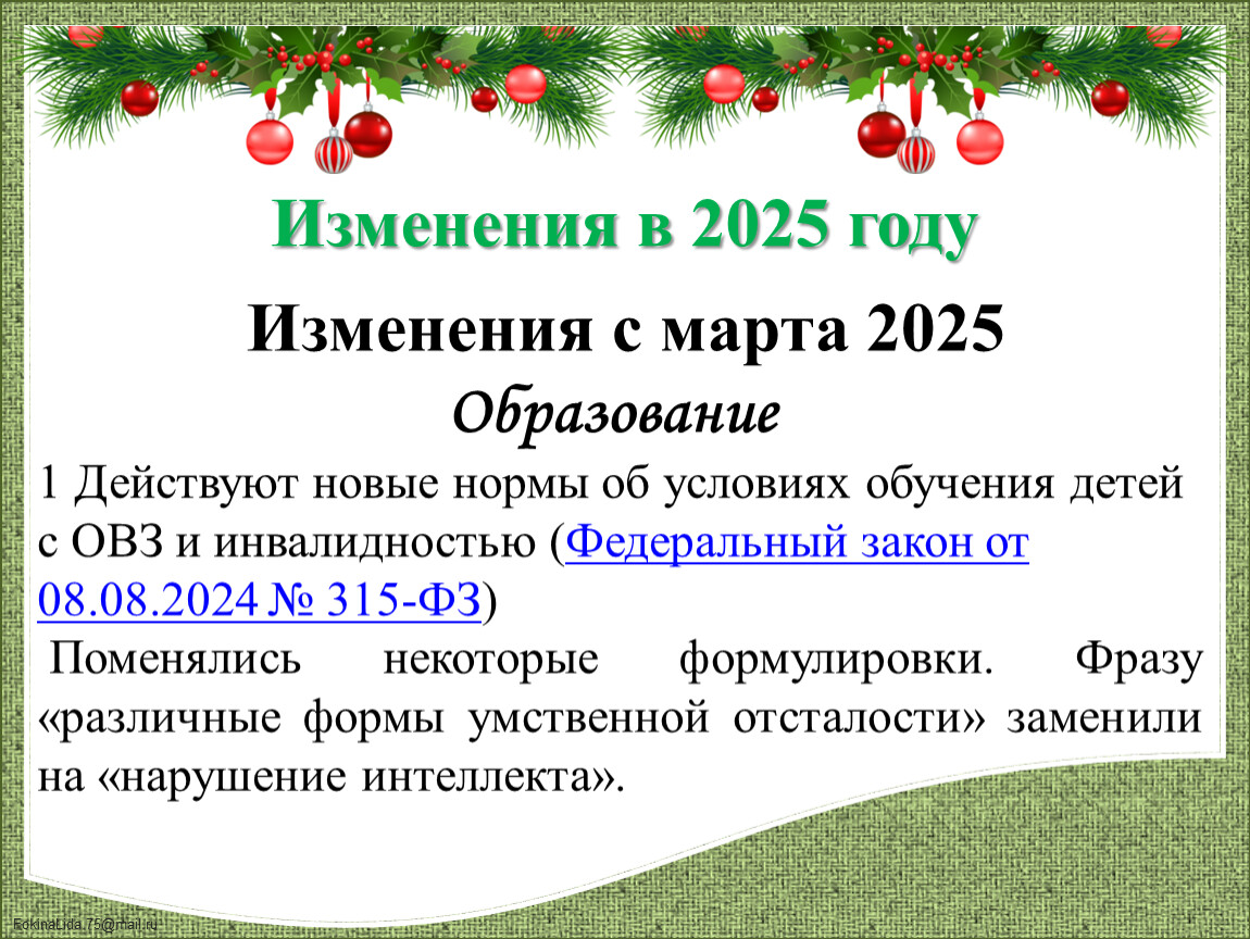 1 Действуют новые нормы об условиях обучения детей с ОВЗ и инвалидностью (Федеральный закон от 08.08.2024 № 315-ФЗ)